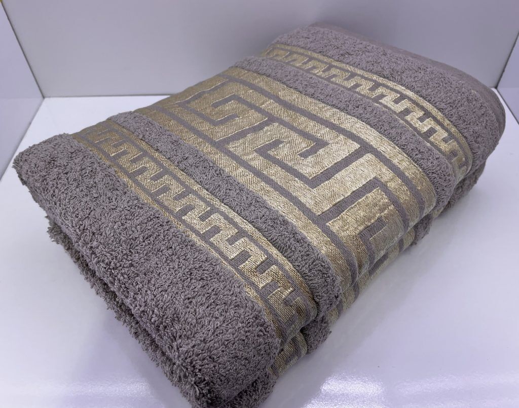 Kvalitná froté osuška s elegantnou bordúrou v zlatej farbe.