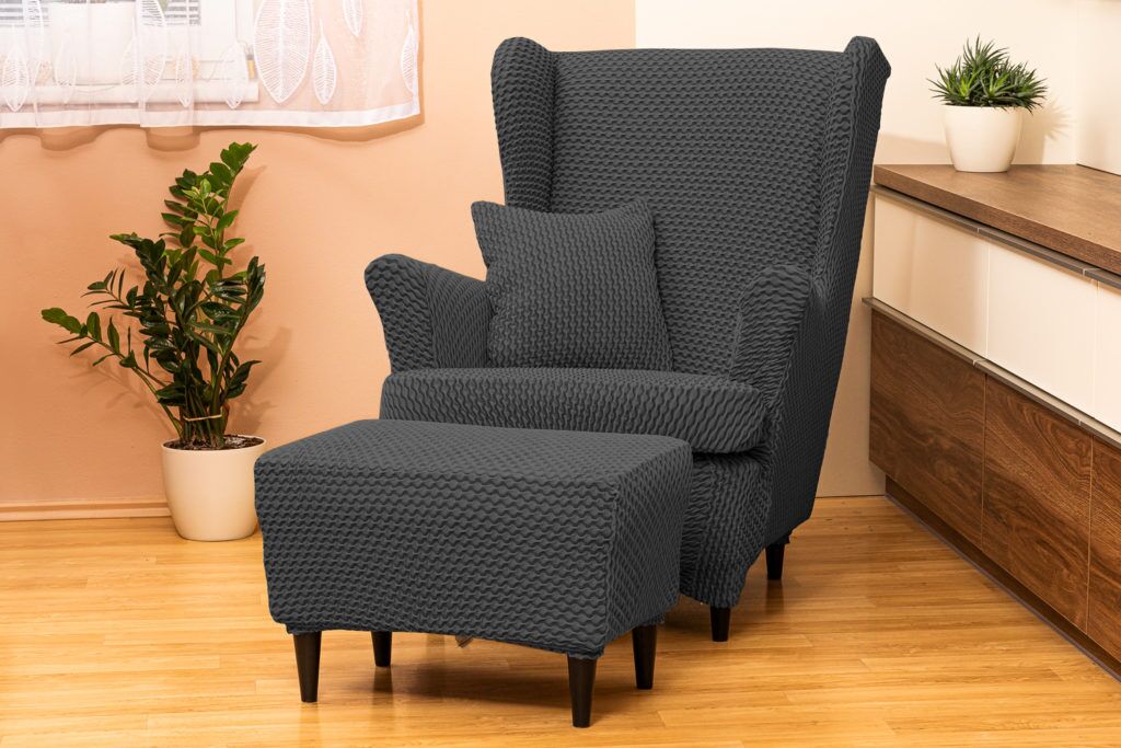 Poťah na kreslo ušiak s podsedákom MALAGA antracitový