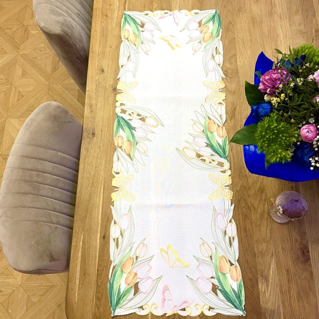 Veľkonočný vyšívaný obrus Tulipány 40x110cm