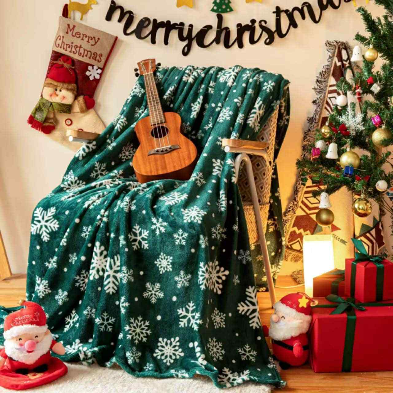 Vianočná deka Vločka petrolejová 150x200cm TiaHome